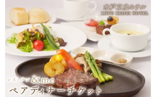 レストラン&me ペアディナーチケット 【コース内容】 1.茨城オードブル盛り合わせ 2.本日のスープ 3.近海平目のポワレ&ハマグリとマッシュルームのグラチネ 4.常陸牛のステーキ 5.ジャージーアイスクリームメロンとイチゴ添え 6.パンまたはライス 7.コーヒーまたは紅茶 |