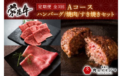 ・1回目 常陸牛100%無添加・手捏ねハンバーグ: 100g×4個(手造りタレ:180ml×1本) ・2回目 常陸牛A5肩肉焼肉:300g ・3回目 常陸牛A5肩肉すきやき:300g |