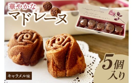 茨城県花のバラの形の華やかなマドレーヌ キャラメルローズ 5個入【バラ 薔薇 マドレーヌ キャラメル キャラメルソース お菓子 焼き菓子 お土産 水戸市 茨城県】(JL-4)