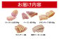 ロースハム、ベーコン、コンビーフ、ペッパーサラミ 各約100g チキンローフ 約160g ウインナー、焼きソーセージ 各4本 フランクフルト 2本 |