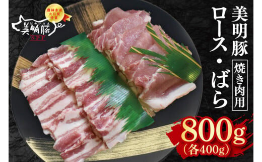【美明豚】焼肉用800g(ロース400g・ばら400g)【冷凍 甘味 国産豚 茨城県 水戸市 国産 銘柄豚】(EK-93)