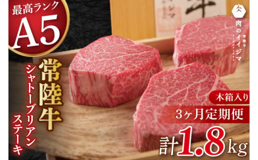 【3か月定期便】常陸牛A5シャトーブリアン ステーキ 200g × 3枚(DU-140)