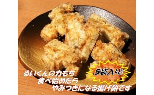 茨城県産もち米を100%使用した揚げ餅「るいくんの力もち3種セット」5袋入りです。