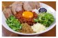 ドラゴン特製のまぜそば用に開発された極太麺を使い、ピリ辛の台…