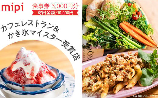 ミピ食事券 ( 1,000円券 × 3枚 )カフェレストラン & かき氷マイスター受賞店 【 かき氷 かきごおり かき氷マイスター カフェ パスタ ランチ ディナー 誕生日 記念日 デート カップル 隠れ家 食事券 金券 セット カフェ レストラン 】