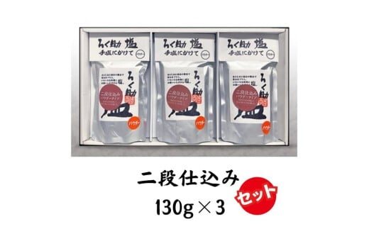 ろく助塩 二段仕込み3個セット 二段仕込み130g×3 | 塩 旨塩 3個セット 干椎茸 昆布 干帆立貝 うま味 プラス 旨み 調味料 白塩 ソルト お弁当 出汁 素材の旨味 調理 食塩