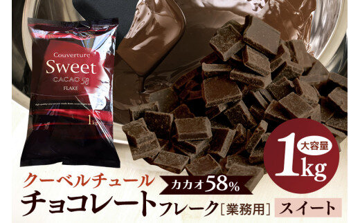 チョコレート クーベルチュール スイート カカオ58% 1kg フレーク 業務用 大容量 カカオ お菓子 チョコ スイート おやつ お菓子作り ケーキ作り 材料 プロ仕様 スイーツ ケーキ 手作り 製菓材料 送料無料