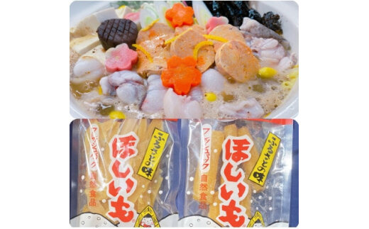 ■お礼品の内容について ・あん肝あんこう鍋[900g] 加工地:茨城県ひたちなか市 賞味期限:発送日から1ヶ月(冷凍) ・ほしいも[丸干し300g×1袋 切干し300g×1袋] 加工地:茨城県ひたちなか市 賞味期限:発送日から1ヶ月(冷凍) ■原材料・成分 あんこう鍋 ●あんこう(国産) あん肝(国産) 焼味噌(大豆(遺伝子組み換えでない)あん肝) ●あんこう鍋用肝入スープ、だし(鰹節(国内製造)、酵母エキス、食塩、鰹節エキス、かつおエキス)、脱脂加工大豆、ぶどう糖、小麦タンパク、米/アルコール)本みりん(もち米(タイ産)、米(国産)、米こうじ(タイ産米、国産米)醸造アルコール(国内製造)糖類、バター(生乳(国産)、あん肝/調味料(アミノ酸等))(一部大豆・小麦を含む) ほしいも:さつまいも紅はるか ■注意事項/その他 ※掲載画像はイメージ あんこう鍋には野菜はお礼品に含まれません。 ※お礼品到着後は、要冷凍(-18℃以下)で保存してください。解凍後は、お早めにお召し上がりください。 ほしいもは保存料などの添加物を一切使用していない半生品です。 ※美味しいものをお召し上がりいただきたいので再冷凍はお控えください。 |