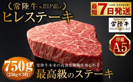 【常陸牛特選A5】ヒレステーキ250g×3枚
