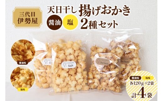 天日干し 揚げおかき 醤油 塩 2種セット ×2 【三代目 伊勢屋】 【ho1401】