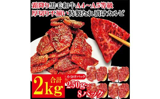 霜降り黒毛和牛 厚切り 不揃い 特製タレ漬カルビ 2kg 冷凍 小分け 黒毛和牛 和牛 霜降り カルビ 味付 焼肉 焼き肉 肉 牛 牛肉 おかず おつまみ 【そうざい男しゃく】【ho1595】
