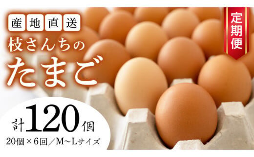 【6ヶ月定期便】枝さんち の たまご 20個×6回 合計120個 定期便 産地直送 たまご 玉子 生卵 鶏卵 タマゴ 平飼い 桜川市産 茨城県産 卵 非遺伝子組換え [BT005sa]