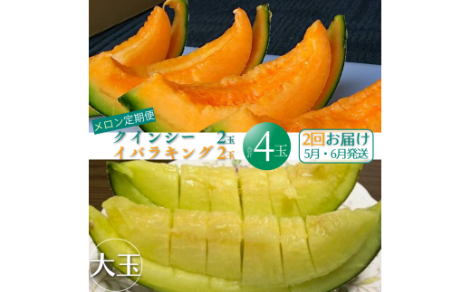 山一ファームの メロン『 2ヵ月 定期便 』5月クインシー2玉・6月イバラキング2玉 茨城 鉾田 フルーツ 旬 プレゼント 贈り物 甘い ヘルシースイーツ 産地直送 農業王国 赤肉 青肉 緑肉