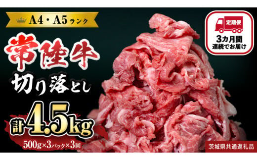 【定期便】 全3回 【 常陸牛 】 切り落とし 1.5kg (茨城県共通返礼品) 国産 焼き肉 牛肉 やきにく ブランド牛肉 ブランド牛 国産牛 黒毛和牛 和牛 国産黒毛和牛 お肉 A4ランク A5ランク すき焼き 牛丼 小分け
