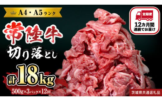 【定期便】 全12回 【 常陸牛 】 切り落とし 1.5kg (茨城県共通返礼品) 国産 焼き肉 牛肉 やきにく ブランド牛肉 ブランド牛 国産牛 黒毛和牛 和牛 国産黒毛和牛 お肉 A4ランク A5ランク すき焼き 牛丼 小分け