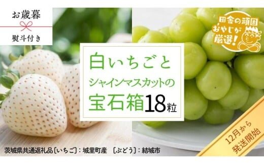 【 お歳暮 熨斗付 】 シャインマスカットと白いちごの 宝石箱 18粒【12月から発送開始】(茨城県共通返礼品 [ぶどう]:結城市産 [いちご]:城里町産) いちご 苺 イチゴ 白いちご 白イチゴ シャインマスカット マスカット 宝石箱