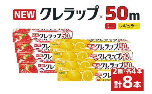NEWクレラップ 50m 2種セット(レギュラー、ミニ) 計8本 クレラップ ラップ 日用品 新生活 準備 30cm 22cm 50m 30センチ 22センチ 50メートル クレラップミニ お徳用 レギュラー ミニ 使いやすい 切りやすい 引き出しやすい パッと切れる キッチン用品 38-C