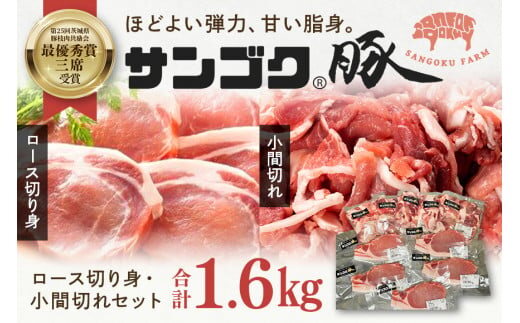 ブランド豚「サンゴク豚」 ロース切り身・小間切れセット 1.6kg 豚ロース 切り身 小間切れ 細切れ こま切れ 豚こま 豚小間 豚小間肉 2-O