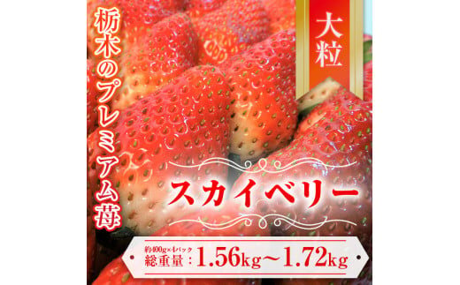 【先行予約】スカイベリー 約390g~430g×4パック | いちご 栃木 スカイベリー 大粒 大きい いちご 苺 イチゴ 栃木 果物 甘い 評判 鮮度 抜群 好評 人気 アレンジ アフター対応あり※離島への配送不可 ※2026年1月中旬~3月下旬頃に順次発送予定