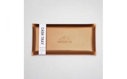 ペントレーとして、会計時のキャッシュトレーとして。アイデア次第で様々な用途に使える、サイズ感のあるアルミ製トレーです。中央にASHIKAGA AIDロゴが刻印されたデザイン、ブロンズゴールドの色合いが高級感 を演出してくれます。