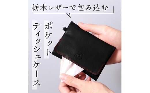 【ブラック(赤糸)】ポケットティッシュケース HUKURO 栃木レザー