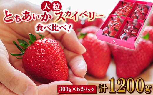 <春イチゴ> 食べ比べ!大粒『スカイベリー』、『とちあいか』300g×2パックずつ【1291781】