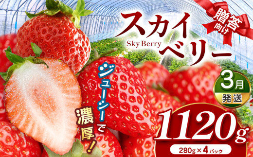 スカイベリー(贈答向け)【3月発送】280g×4p | 贈答品 プレゼント 新鮮 完熟 いちご 旬 スカイベリー 苺 ストロベリー 高級 産地直送 大容量 人気 高評価 真岡市 栃木県 送料無料