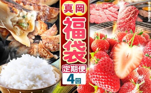 【定期便4回】真岡の グルメ 定期便 | 数量限定 いちご 苺 米 お米 簡単 プレゼント お土産 餃子 ぎょうざ ビック こしひかり 肉 お肉 サーロイン 焼肉 バラ A5 ランク 豪華 贅沢 栃木県 真岡市 送料無料