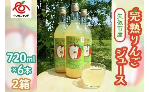 矢板市産 完熟りんごジュース《720ml×6本 2箱》|林檎 リンゴ 果汁100% 産地直送