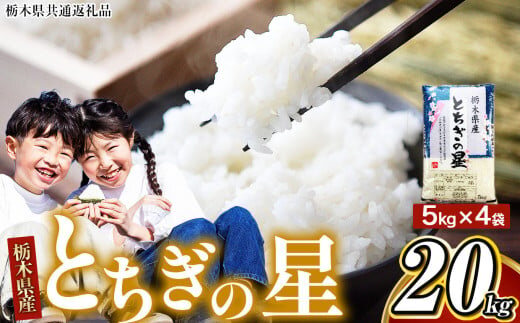 【栃木県共通返礼品】【令和7年度産新米】栃木県産 とちぎの星 白米 5kg×4袋(合計20㎏) | ふるさと 納税 新米 お弁当 お米 精米 美味しい 白米 つやつや とちぎ 大粒 共通返礼品 送料無料 那珂川町 栃木県