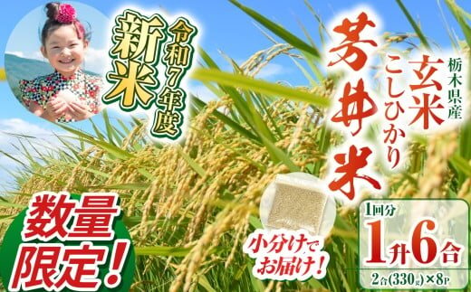【数量限定】【令和7年度新米】新米那珂川町産芳井米 玄米 330g(2合分)×8 | こしひかり 新米 米 ごはん ふっくら もちもち ふるさと納税 那珂川町 栃木県