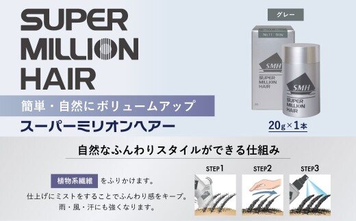 スーパーミリオンヘアー(増毛パウダー)1本(20g)No.11グレー| 男女兼用 ルアン SUPER MILLION HAIR ボリュームアップ 男性用 女性用 メンズ レディース ヘアケア 薄毛隠し 白髪隠し カバー 対策 手軽 増毛剤 粉