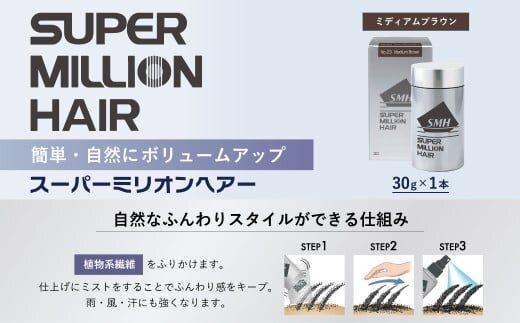 スーパーミリオンヘアー(増毛パウダー)1本(30g)No.23ミディアムブラウン| 男女兼用 ルアン SUPER MILLION HAIR ボリュームアップ 男性用 女性用 メンズ レディース ヘアケア 薄毛隠し 白髪隠し カバー 対策 手軽 増毛剤 粉