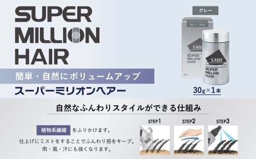 スーパーミリオンヘアー(増毛パウダー)1本(30g)No.11グレー| 男女兼用 ルアン SUPER MILLION HAIR ボリュームアップ 男性用 女性用 メンズ レディース ヘアケア 薄毛隠し 白髪隠し カバー 対策 手軽 増毛剤 粉