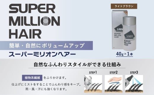 スーパーミリオンヘアー(増毛パウダー)1本(40g) No.3ライトブラウン| 男女兼用 ルアン SUPER MILLION HAIR ボリュームアップ 男性用 女性用 メンズ レディース ヘアケア 薄毛隠し 白髪隠し カバー 対策 手軽 増毛剤 粉