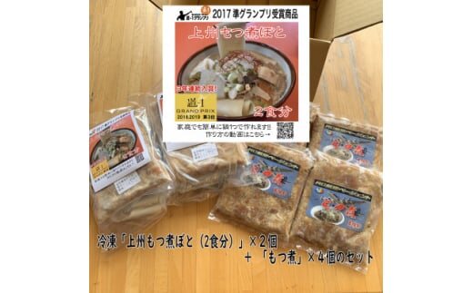 道-1グランプリで連続入賞(※)の「上州もつ煮ぼと」と「もつ煮」の冷凍セットです。お好みの具材を合わせるだけで美味しく召し上がれます。