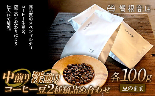 中煎りと深煎りのコーヒー豆 2種類 詰め合わせ(各100g) ブレンド シングルオリジン オフィス アウトドア キャンプ おうち時間 群馬県 渋川市 F4H-0124