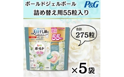 ボールドジェルボール4D詰め替え用心弾けるホワイトティー&フローラル55粒入×5袋(計275粒)【1651826】