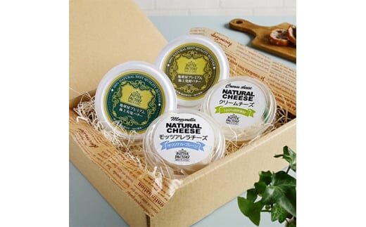 ※パッケージは変更となる可能性がございます。予めご了承ください。バターの製造、および チーズの醗酵、製造、梱包はすべて村内の店舗内