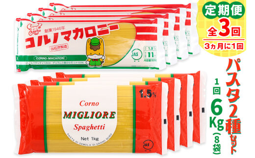 [定期便/3ヶ月おき 全3回] パスタ2種セット 計18kg (スパゲッティ2種×4袋/計6kgを3回)|大容量 コルノマカロニー スパゲティ スパゲッティ パスタ 乾麺 麺 備蓄 保存食 国内製造 デュラムセモリナ [0279]