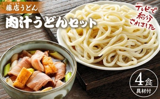 藤店うどん 具材付き肉汁うどんセット 4人前 / カツオだし 中太麺 豚バラ ネギ 埼玉県