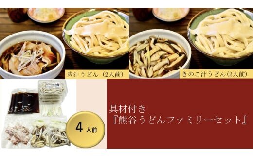 【 手打ち 熊谷うどん ファミリーセット (4人前) (肉汁うどん2人前+きのこ汁うどん2人前)】 TV番組 『バナナマンのせっかくグルメ』 紹介店! 他にもTV出演多数! 熊谷市産小麦 『あやひかり』 100%使用! 国産 無添加 化学調味料・保存料不使用 TV紹介店