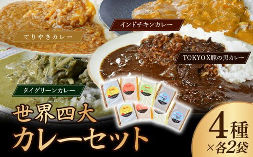 【訳あり】世界四大カレーセット 黒カレー・チキンカレー・グリーンカレー・てりやきカレー 4種×2袋 タミー食品 | 訳あり カレー 時短 レンチン 冷凍食品 インドカレー ポークカレー チキンカレー グリーンカレー スパイス スパイスカレー 豚 豚肉 ポーク 鶏 鶏肉 チキン 冷凍カレー エスニック 本格的 保存食 常備食 プレゼント 自宅用 おいしい おすすめ 埼玉県 所沢市
