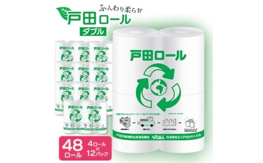 トイレットペーパー ふんわり柔らかダブル 4ロール×12パック(48ロール)<戸田市 戸田ロール>_ トイレットペーパー ダブル 人気 日用品 日用雑貨 紙 消耗品 生活雑貨 生活必需品 備蓄 再生紙100% リサイクル エコ 戸田市 12パック 柔らか 【1391718】