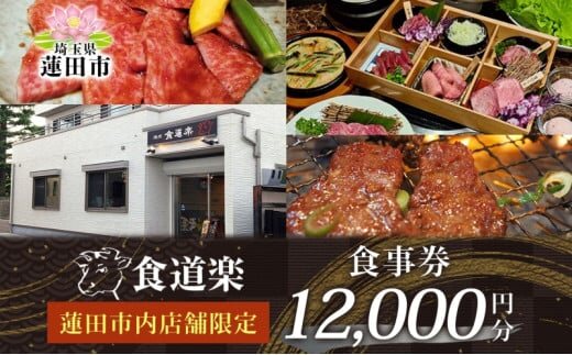 [食道楽] 蓮田市内店舗限定 食事券 12000円分 1000円分×12枚 焼肉 黒毛和牛 A5 手作りタレ グルメ 食事 チケット 商品券 プレゼント ギフト 地域密着 埼玉県 蓮田市
