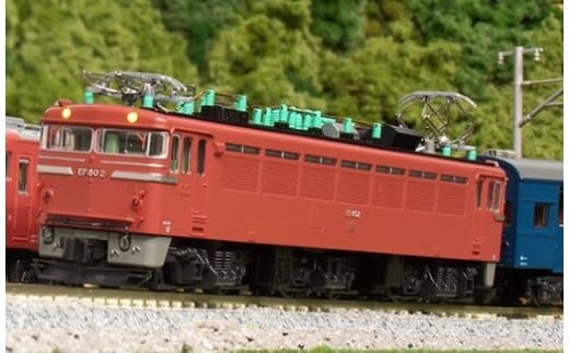 常磐線で活躍した電気機関車「EF80」と国鉄時代の貨物列車のNゲージ鉄道模型車両です。
