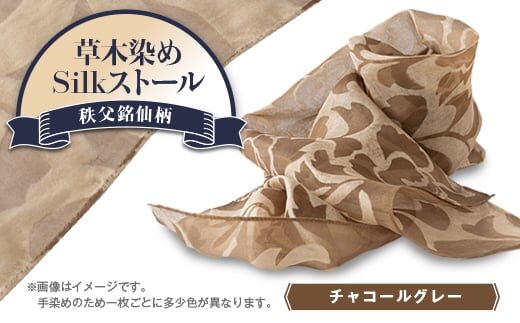 草木染めSilkストール《秩父ヤシャブシ染めチャコールグレー》《秩父銘仙柄》【1255212】