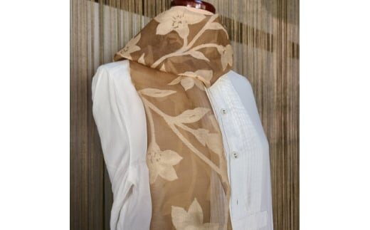 柄のある所はシルク本来のしなやかさと、色づきの部分はハリのあるシルクの質感をお楽しみください。