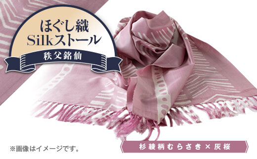 秩父銘仙 ほぐし織Silkストール〈杉綾柄むらさき×灰桜〉【1429004】