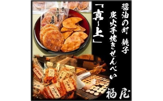 せんべいセット(ご自宅用)【真・上】15枚+20本+70グラム 醤油の町「銚子・福屋」の炭火焼手焼きせんべい